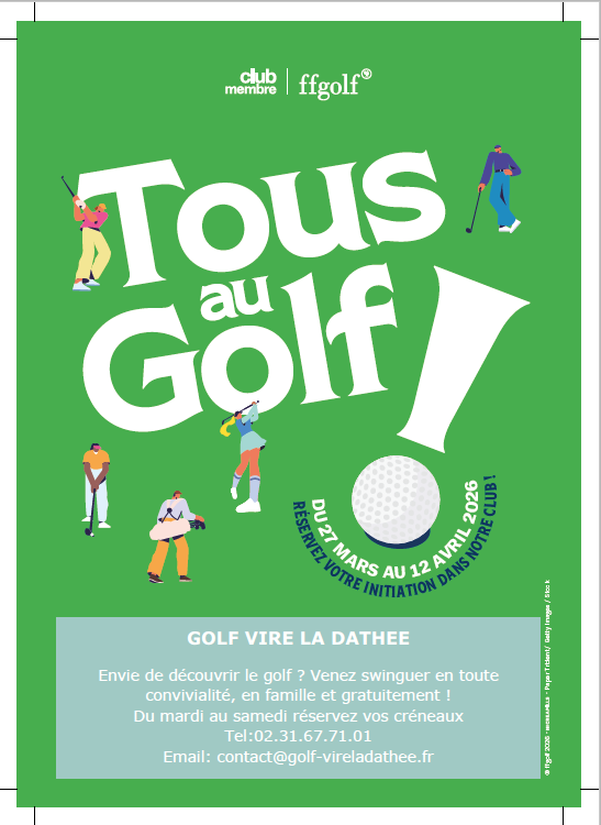 Jeudi 26 Mars 2026: Rencontre Vire/Flers Repas 12 h: 16€ Shotgun à 13h00: en scramble à 2 - - - - - - - - - - - Samedi 28 Mars 2026: Challenge du Club (inscriptions closes) Départ en ligne de 12 à 14h - Match Play Repas au retour sur inscription …